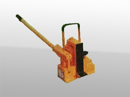 液壓起拔道器由油缸,油缸座,油箱,柱塞泵,支架,底座及搬把等組成。底座,支架及油缸座有銷軸鉸接而成平面四連桿機構。油缸座上設有安全閥和回油閥等機構。搬動操縱桿使柱塞泵里產生的高壓油進入油缸,推動活塞伸出,在活塞推力的作用下,油缸及支架繞底座上的銷軸同時向上旋轉,在養(yǎng)路機具起道輪的鉸接處產生垂直向上的推力,同時在支架的頂塊上產生水平方向的推力,從而達到起道和拔道的目的。